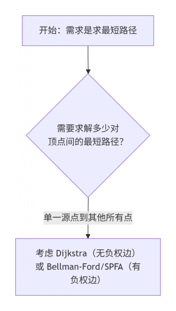 了解一个算法的优缺点和适用场景,与理解其原理同等重要。为了帮助你更直观地理解Floyd在算法家族中的位置,以及如何在具体问题中做出选择,可以参考下面的决策流程图: